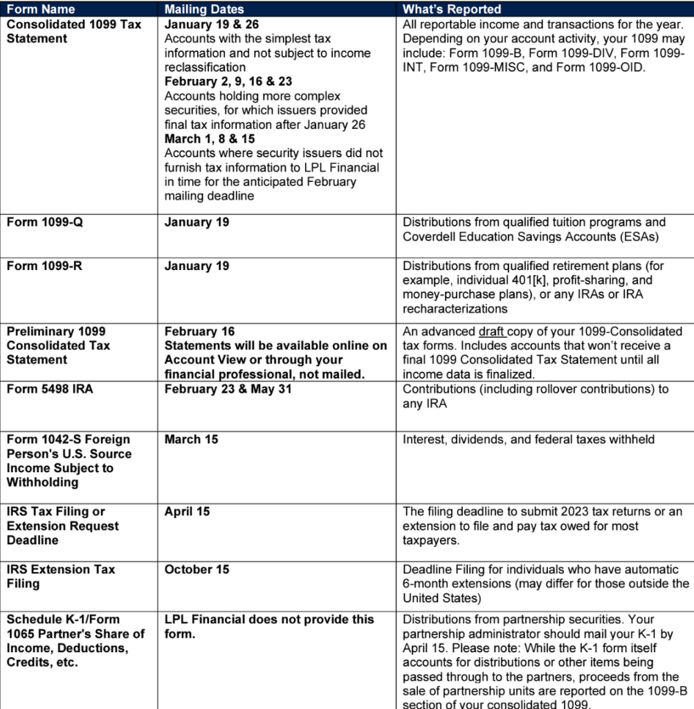 LPL will mail 1099 Consolidated Tax Statements in four phases, which are outlined below.